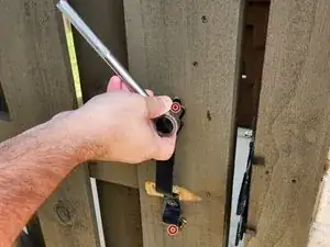 В этом руководстве Вы снимете существующую ручку и штангу, ослабив и удалив все болты с шестигранной головкой 13 мм с помощью ключа с храповым механизмом. Если ручка и штанга погнуты, перед сборкой Вы выпрямите их при помощи молотка. Далее Вы спланируете новое расположение, разметите и просверлите направляющие отверстия. После создания направляющих отверстий Вы установите ручку и штангу на новое место, вставив и затянув болты. Эти шаги позволят правильно выровнять ручку и штангу, чтобы калитка открывалась и закрывалась без дальнейших повреждений.