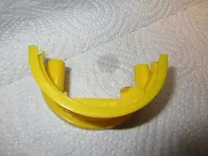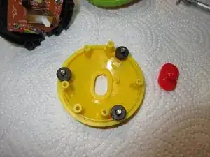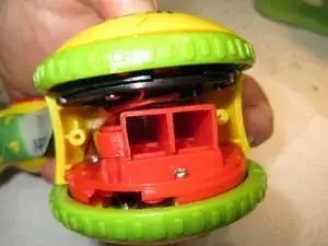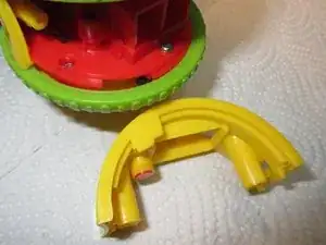 Затем оттяните желтую часть — Rolliraupe раскроется на три части: желтая часть, правое колесо, левое колесо, все вместе с некоторыми проводами.