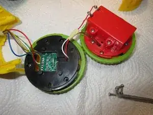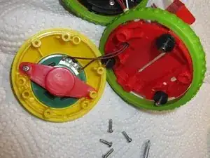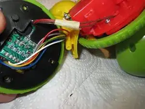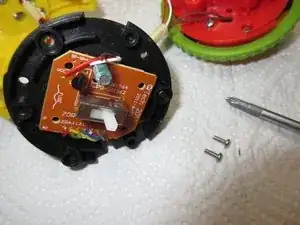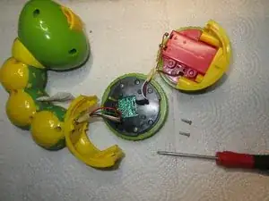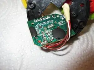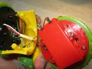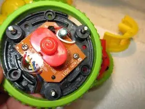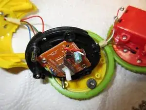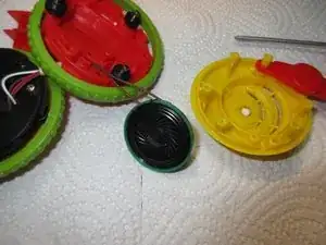 С моим динамиком всё в порядке, как видно на изображении 2... Провода в порядке, динамик внешне цел. Я затем собрал его и осмотрел плату электроники, которую видно на третьем изображении. Она находится в другом колесе Rolliraupe. Также открутите ВСЕ винты. Тогда корпус легко откроется.