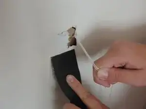 Потяните бечёвку так, чтобы картон прилегал заподлицо со стеной.