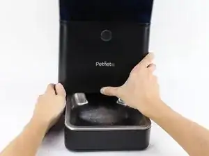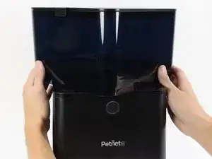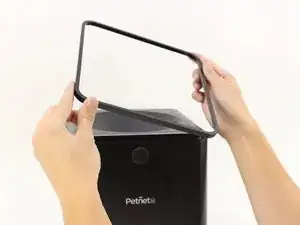 Снимите черное пластиковое уплотнение с верхней части SmartFeeder, разместив пальцы по бокам и подняв вверх.