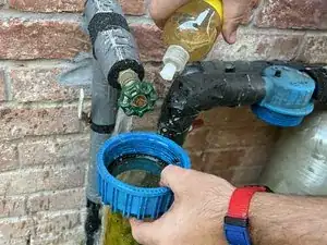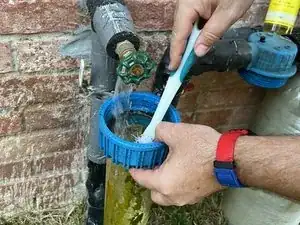 После 2–3 месяцев использования (когда предфильтр темнеет или снижается поток воды) предфильтр осадка необходимо заменить. Если этот предфильтр не заменить вовремя, давление воды может упасть, и частицы осадка могут попасть в основной фильтрующий бак и засорить его.