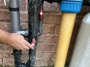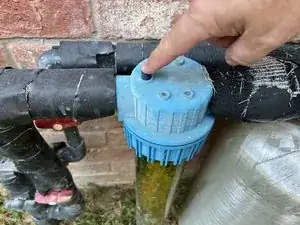 Нажмите на чёрную кнопку сброса давления на верхней части корпуса фильтра.