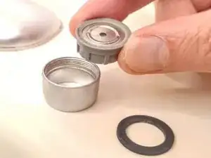 Положите прокладку аэратора на аэратор внутри муфты смесителя. Это создаст уплотнение между аэратором и смесителем, предотвращая утечку воды.
