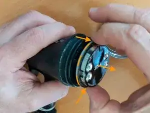Обратите внимание на то, как разъем головки фонаря направляется к разъему PCB через направляющую пластикового колпака.