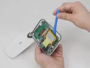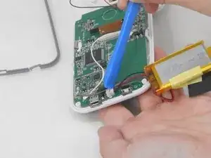 Пластиковым инструментом подденьте аккумулятор монитора от материнской платы.