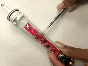Снимите головку и используйте плоскогубцы, чтобы снять белую крышку. Извлеките плату.