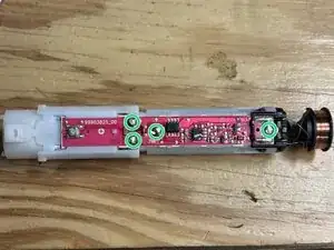 Изображение #3 показывает восстановленную площадку. Проверьте работу аккумулятора и мотора щётки без головки щётки. Если щётка теперь работает, возможно, нет необходимости менять аккумулятор — если напряжение аккумулятора находится в пределах 1,2–1,5 вольт и мотор срабатывает при нажатии кнопок, на этом можно остановиться и собрать щётку обратно.