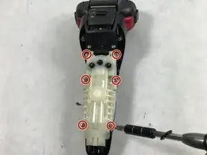 С помощью биты Phillips 00 отвинтите шесть винтов (12 мм) крепления корпуса аккумулятора.