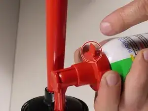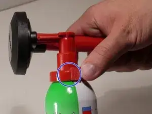 Удерживая язычок, сдвиньте полукруглый фиксатор, чтобы освободить рожок от баллона.