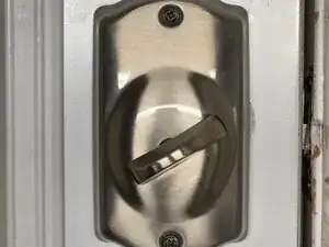 Снимите два монтажных винта с внутреннего блока замка и снимите внешнюю оболочку, чтобы получить доступ к внутренним компонентам замка.