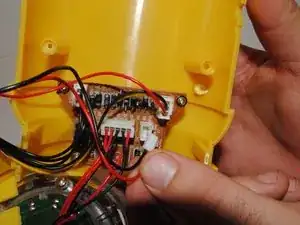 Проследите за красным и черным проводами от батареи к белому зажиму, соединяющему их с основной платой питания. Вытяните белый зажим из гнезда на основной плате. Это разорвет электрическое соединение между батареей и остальной частью фонаря.