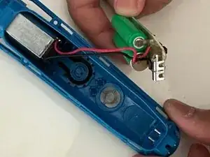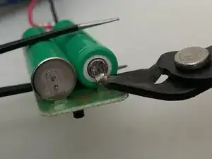 Используйте плоскогубцы, чтобы отогнуть контактную лапку батареи, припаянную к батарее. Повторите ту же операцию для всех 4 контактных лапок (по две с каждой стороны держателя батарей).