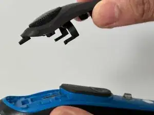 Держите триммер в противоположном направлении, чтобы кнопка питания спереди не была обращена к Вам.