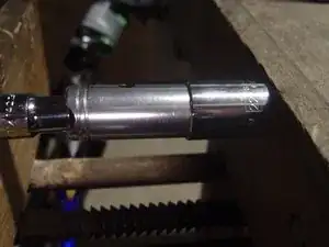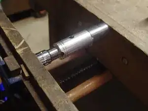 Зафиксируйте фонарь между головками 11 мм и 22 мм в тисках таким образом.