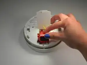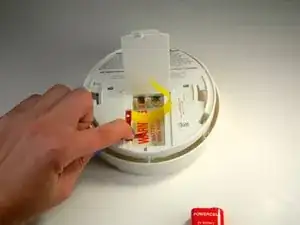 Откройте отсек для батарейки на задней панели дымового сигнализатора.