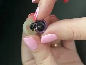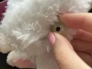 Когда глазик на месте, наденьте фиксатор на глазик изнутри игрушки.