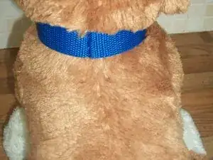 Поверните собаку спиной к себе. Найдите шов. (Направление ворса будет уходить от центра спины). Возможно, потребуется раздвинуть ворс, чтобы увидеть строчку.