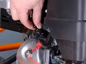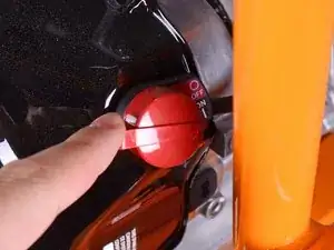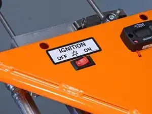 Переключите красный выключатель двигателя в положение ВЫКЛ.