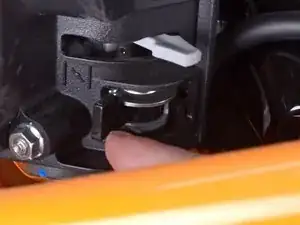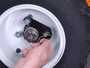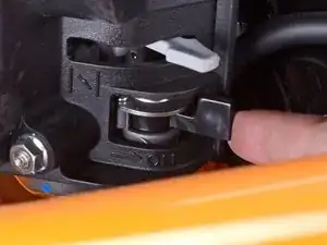 Вытащите фиксирующий штифт и поверните его на 90˚, чтобы разблокировать правое колесо от ступицы.