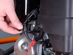 Возьмите за пластиковый корпус на конце провода свечи зажигания и потяните сильно, чтобы отключить его.