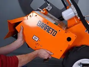 Используйте головку на 1/2 дюйма и ключ, чтобы удалить четыре болта и соответствующие гайки, крепящие боковую плиту к покрытию рыхлителя.