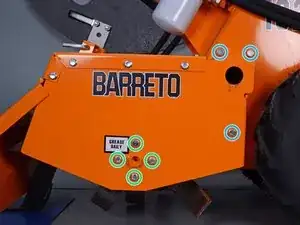 Наклоните рыхлитель так, чтобы сторона с мотором упиралась в рабочую поверхность, а рыхлители были подняты.