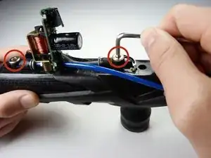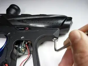 Снимите винт 12 мм на верхней части каркаса рукояти, используя шестигранный ключ 3/32".