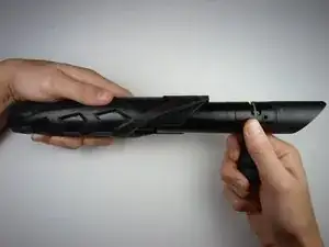 Вытяните металлическую часть корпуса из пластикового кожуха, удерживая одну часть в каждой руке и аккуратно раздвигая их.