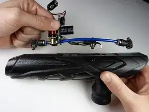 Снимите винт 1‑1/4", прикреплённый к синей трубке над передней рукоятью, используя шестигранный ключ 3/32".