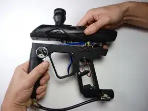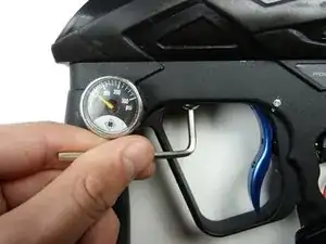 Нажмите на спусковой крючок, чтобы выпустить воздух из маркера.