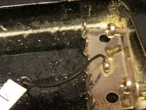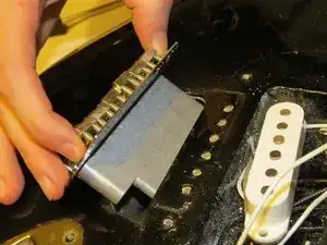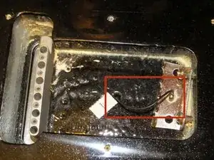 Имейте в виду, что провод заземления электроники гитары прокладывается через корпус и припаян к держателю пружин.