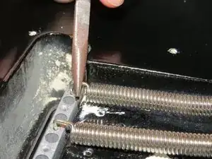 Чтобы снять пружины с бриджа, захватите конец плоскогубцами и потяните вверх.