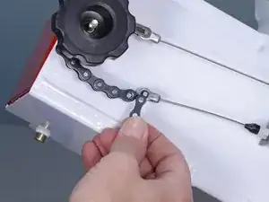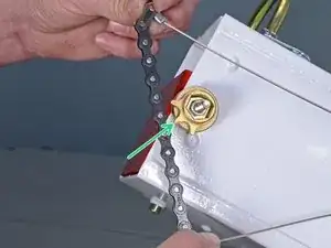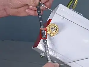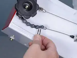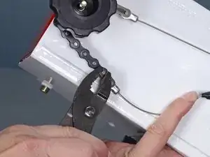 Следующие два шага покажут, как снять замковое звено на цепи дефлектора.