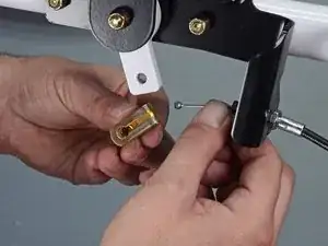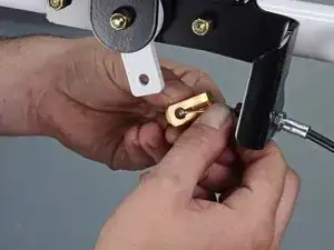 Сожмите язычки по обеим сторонам толкателя троса плоскогубцами и протолкните его через кронштейн.