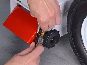 Найдите запорный клапан подачи топлива и переведите рычажок влево, чтобы закрыть его.