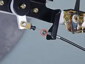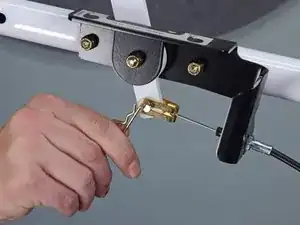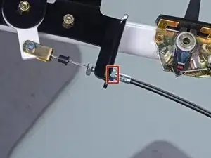 Используйте гаечный ключ 7/16 дюйма, чтобы открутить гайку, фиксирующую корпус троса к кронштейну.