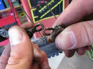 Соедините концы сцепного звена и потяните — оно должно защёлкнуться. Если нет, поместите сцепное звено над задней передачей, удерживайте заднее колесо и слегка проверните педаль. Нагрузка на цепь должна защёлкнуть сцепное звено на месте.