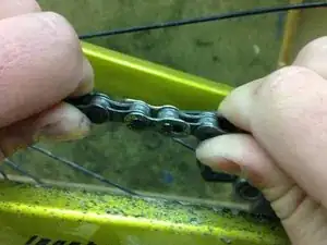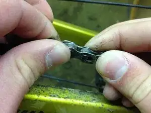 Найдите сцепное звено на велосипедной цепи, сожмите концы сцепного звена вместе — звено разъединится, возможно потребуется большое усилие. Если Вы это сделали, переходите к шагу 2. Если не можете его найти, возможно, в вашей цепи его нет.