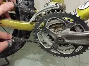Установите цепь, с свободным концом сверху, на звёздочку подножного привода.
