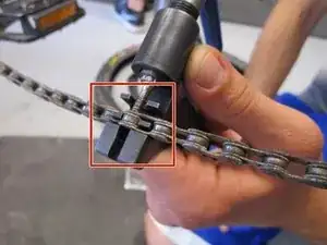 Если в цепи нет сцепного звена, используйте съёмник цепи, чтобы разделить любые две звенья цепи.