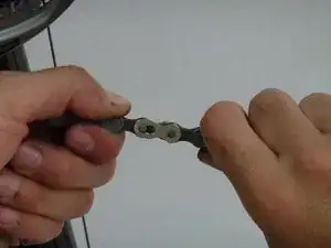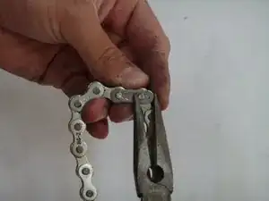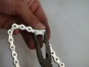 Сжмите два пина плоскогубцами, чтобы цепь разъединилась.