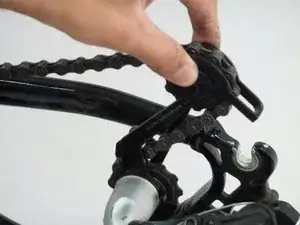 Удерживая задний переключатель, потяните рычаг назад, от передней части велосипеда.