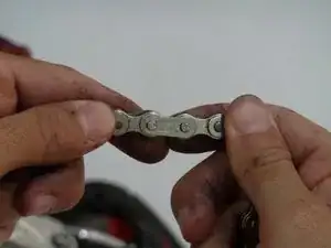 Удерживайте цепь с обеих сторон мастер-линка и потяните.