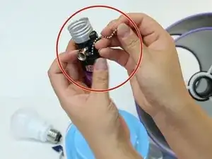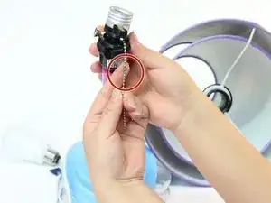 Соедините цепочку с соединителем с оборванной цепочкой на основании лампы.
