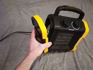 Используя руки, аккуратно разожмите пластиковые половинки обогревателя, чтобы увидеть внутренности устройства.