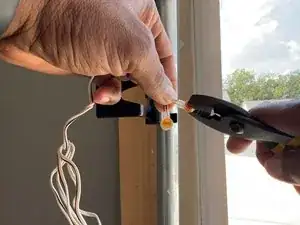 Разделите концы проводов и используйте стриппер, чтобы зачистить концы проводов, идущих в стену.