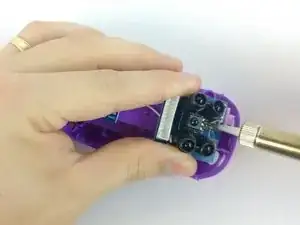 Чтобы снять датчики, используйте паяльник, чтобы расплавить припой в двух точках и удалить красный и чёрный провода с обратной стороны.