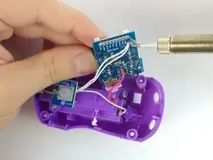 Переверните датчик и найдите точки пайки оставшихся белых проводов. Нагрейте припой и снимите пару проводов.