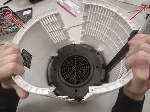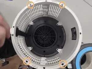 Снимите четыре винта длиной 1 см, фиксирующие корпус вентилятора.